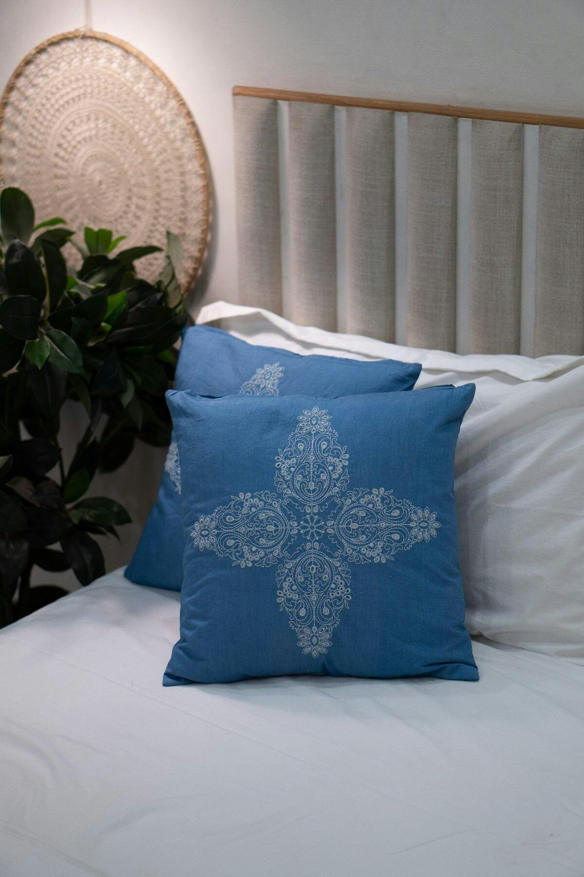 Intricately embroidered mandala motifs bring harmony and elegance to your space. Mindfully crafted using pure, breathable fabrics for a touch of art and serenity in every stitch.
